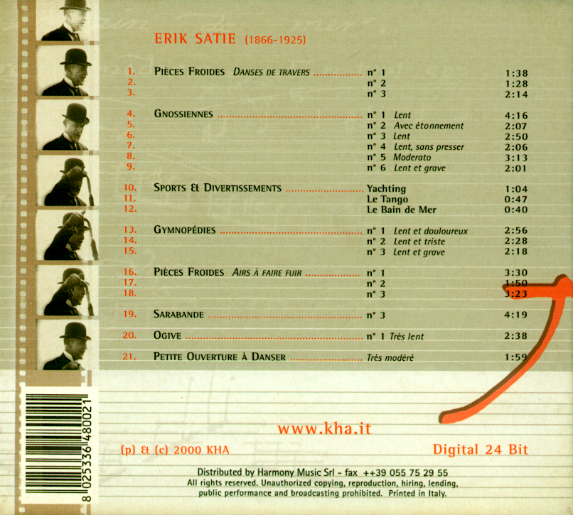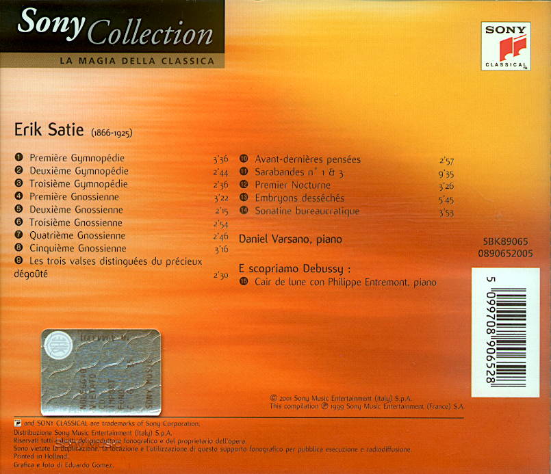 | Erik SATIE | Gymnopédies, Gnossiennes | cd | 2001 | Post 2001 | 15 | !!!/!! | |